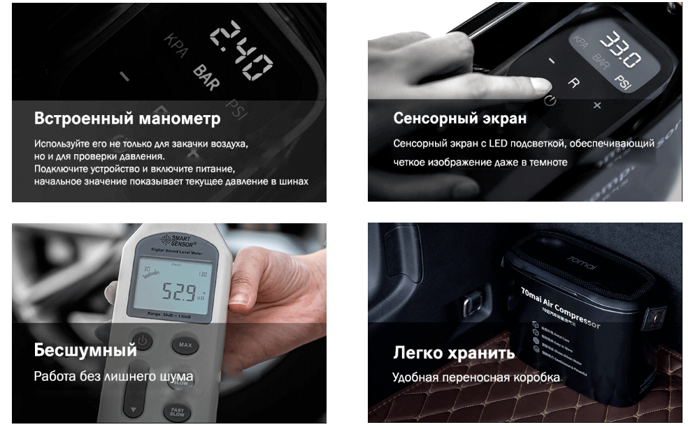Умный чип принимает данные от датчика в реальном времени и динамически регулирует давление. Просто установите желаемый PSI и идите пить кофе. 70mai автоматически отключится при достижении нужного давления.