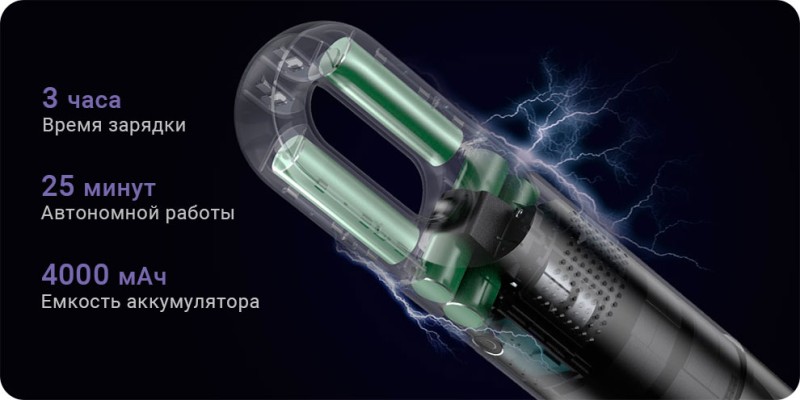 Работает пылесос автономно, от аккумулятора емкостью 4000 мАч. Этого достаточно для 25-30 минут автономной работы. Световой индикатор показывает актуальный уровень заряда. Зарядка 70mai Vacuum Cleaner Swift происходит по USB Type-C (уже в комплекте).