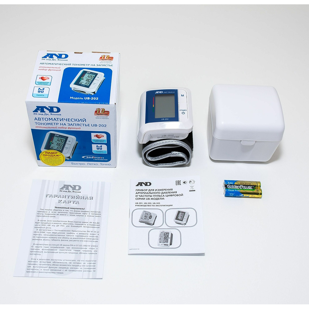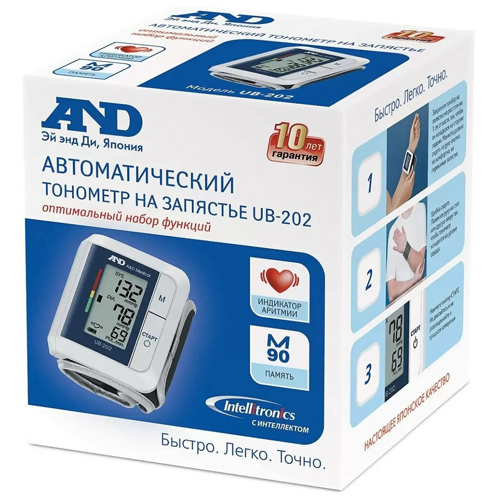 A&D Тонометр автоматический на запястье AND UB-202 с интеллектуальным управлением, индикатором аритмии, памятью на 90 измерений I00023