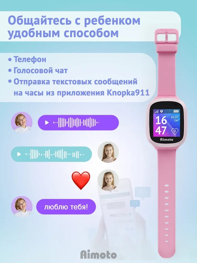 AIMOTO Start 2 Детские умные часы с GPS – розовые