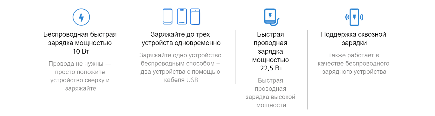 | Выходная мощность при беспроводной зарядке | 10 Вт |