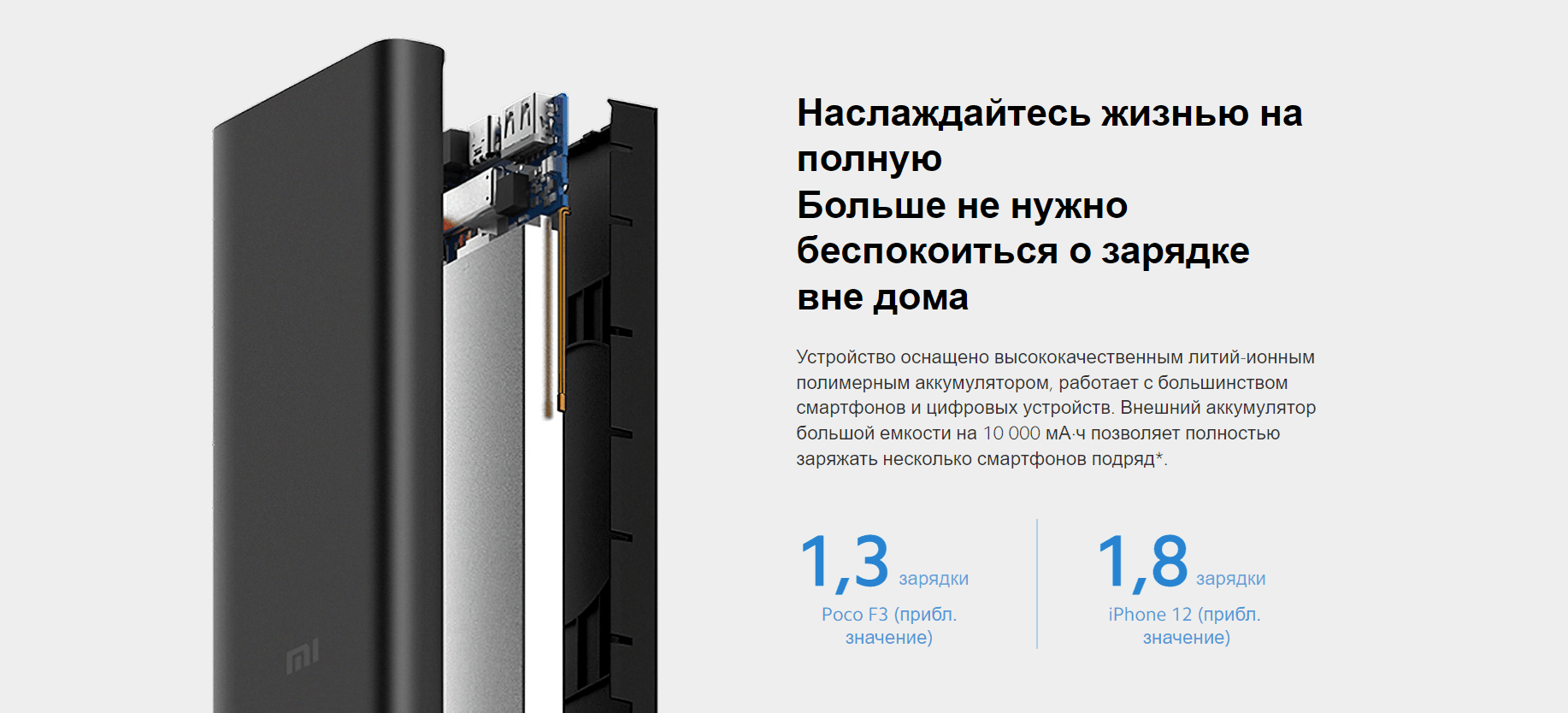 | Комплектация | Беспроводной аккумулятор Xiaomi 10W Wireless Power Bank 10000, кабель для зарядки, руководство пользователя |
