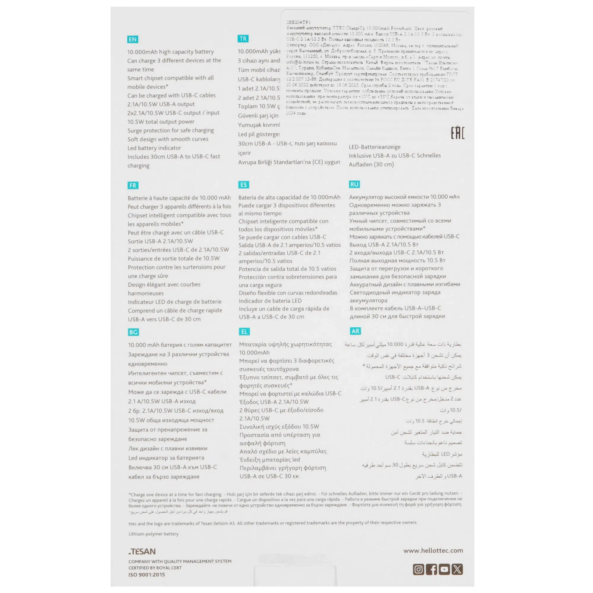 TTEC ChargeUp – мощный внешний аккумулятор с емкостью 10000mAh. Встроенные порты позволяют одновременно заряжать два устройства. Лёгкий и компактный, идеально подходит для путешествий. Верхний слой выполнен из прочного пластика, атмосферного розового цвета. Совместим с большинством гаджетов. Быстрая и безопасная зарядка вне дома теперь стала еще проще!