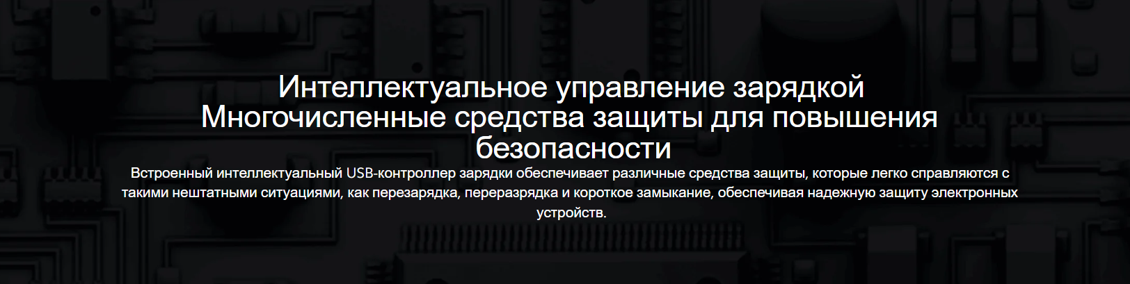 Поддерживаются несколько протоколов быстрой зарядки, например PD и QC3+, также доступна быстрая зарядка таких популярных устройств, как смартфоны, планшеты, коммутаторы и фитнес-браслеты.