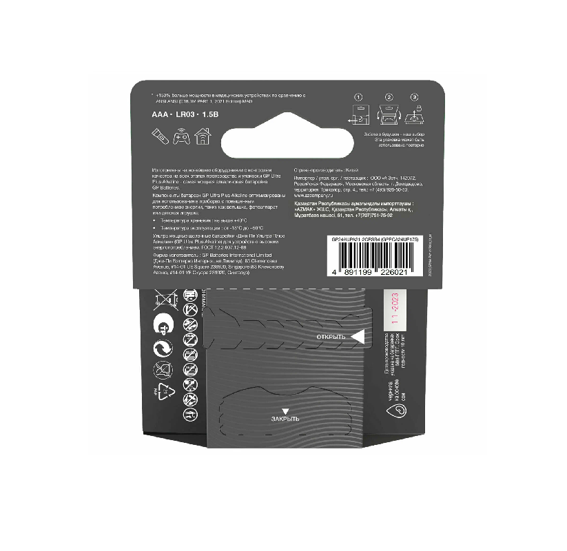GP Ultra Plus Alkaline 24А AАA удобные батарейки для постоянного использования в быту и не только. Эти качественные батарейки гарантируют надежность и долгий срок службы. Так же они обеспечивают стабильную работу устройств без каких-либо проблем. Батарейки сделаны на основе инновационной технологии G-TECH, благодаря которой выдается больше мощности на устройствах, употребляющих много энергии.