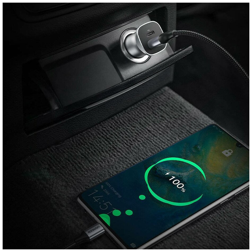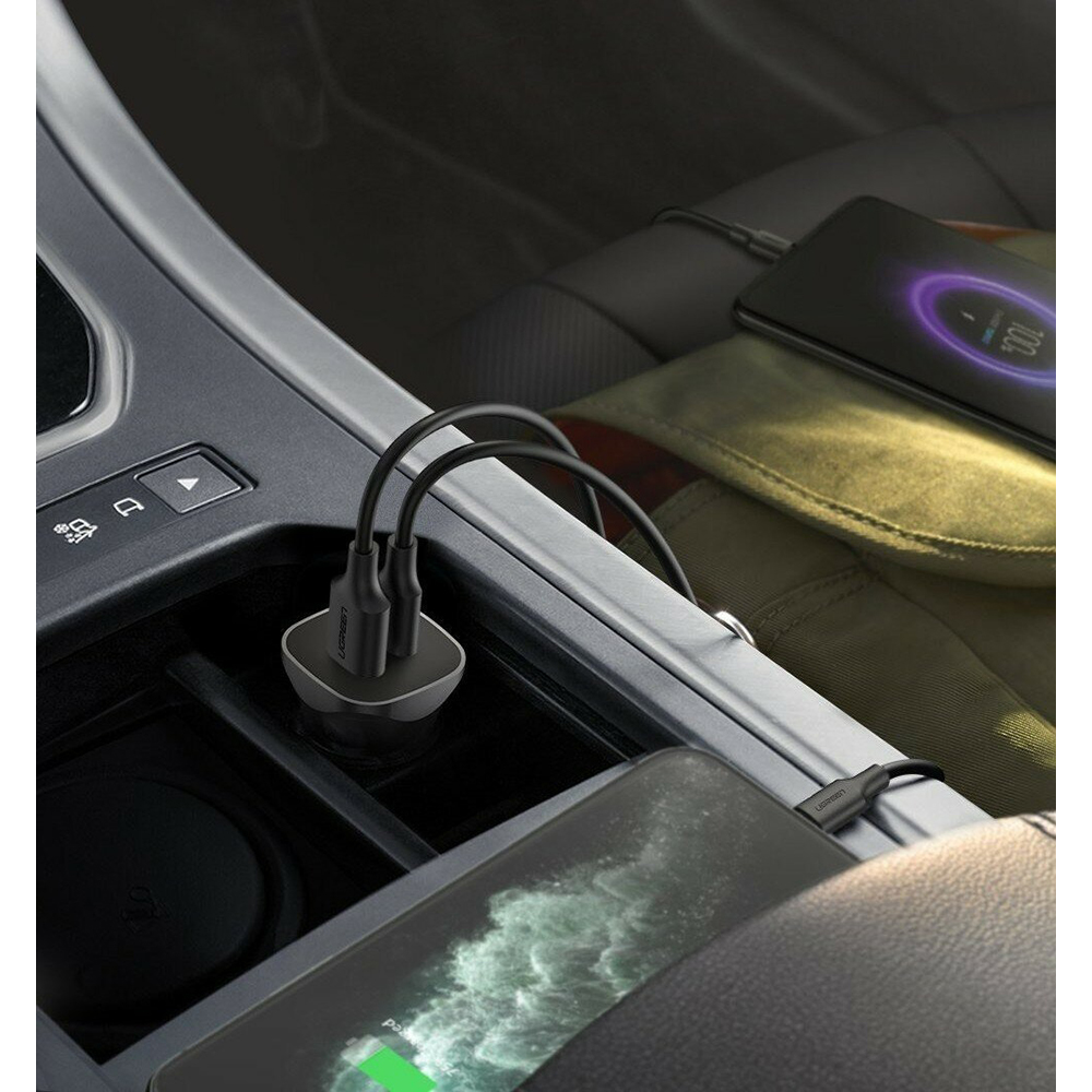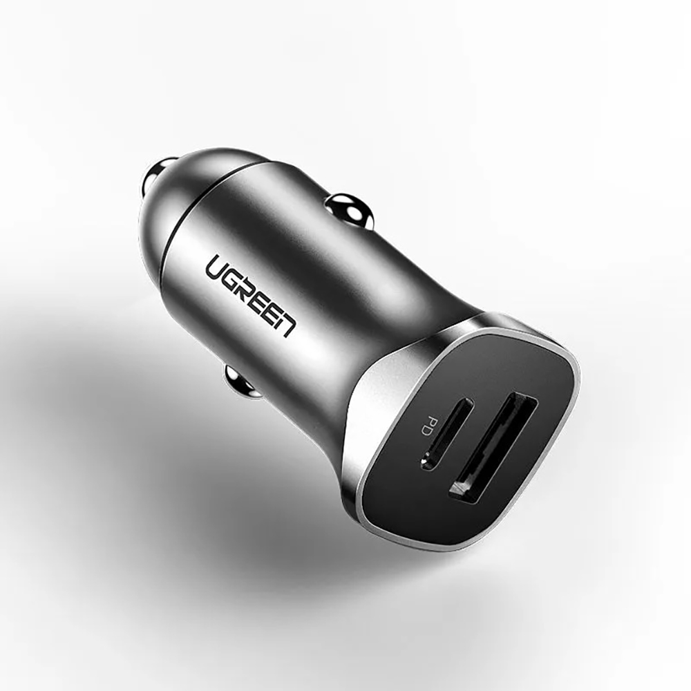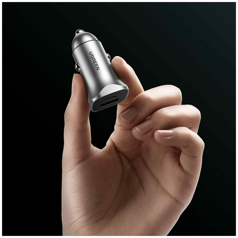 Автомобильное зарядное устройство UGREEN CD130 (30780) USB-C PD+USB-A QC 24W Fast Car Charger. Цвет: серый космос