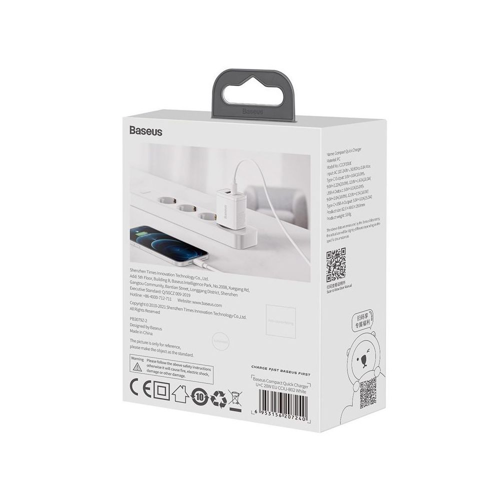 Сетевое зарядное устройство Baseus CCCP20UE — это надежный компаньон в мире быстрой зарядки. Его элегантный дизайн и компактные размеры делают его идеальным выбором для тех, кто ценит стиль и функциональность. Благодаря высокой мощности зарядки и интеллектуальной защите от перегрева и перегрузок, вы можете быть уверены в безопасности своих устройств. Отныне зарядка станет не только быстрой, но и стильной с Baseus.