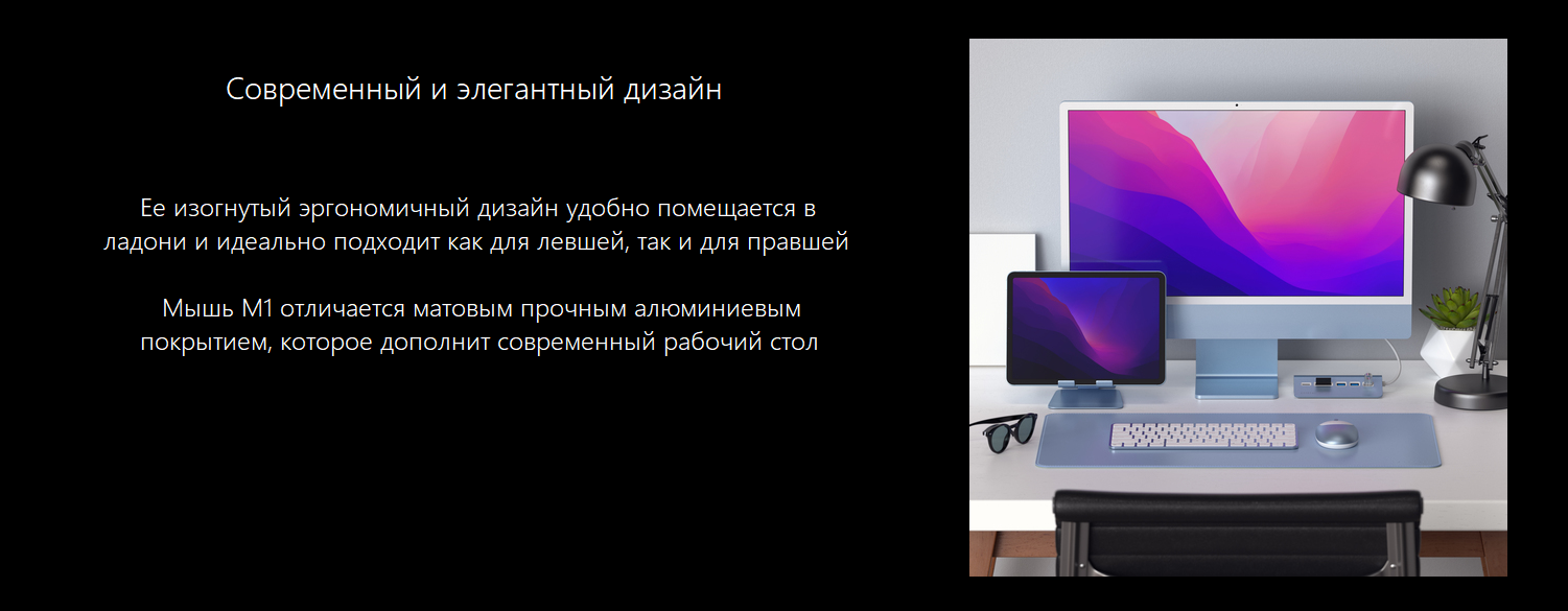 Удобная в использовании, дизайн подходит под Mac, как будто она была создана специально для M1.