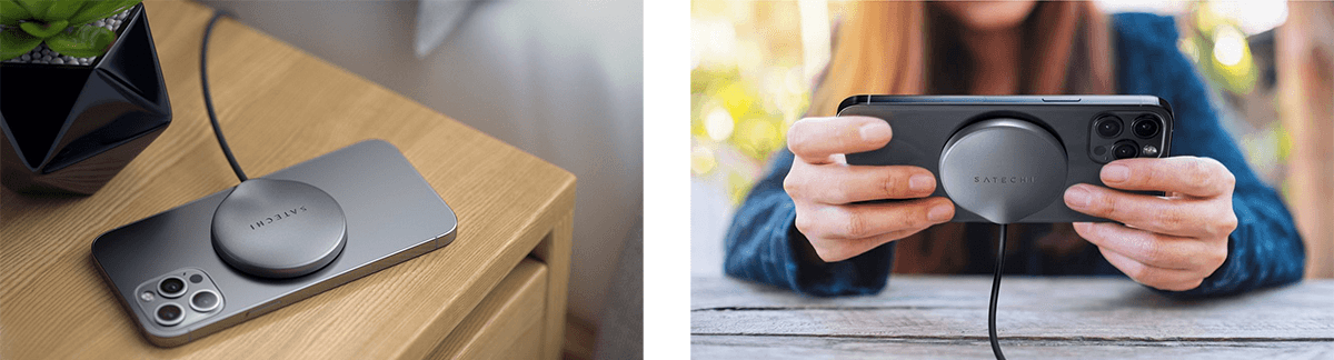 Теперь о самом устройстве: невероятно удобно, телефон валяется где угодно в пределах длины кабеля, всегда доступен и всегда заряжен. Причем, есть зарядная станция, тоже от Satechi, и тоже великолепная вещь, но она стационарная и всегда при звонке надо было вставать и телефон с нее снимать, а потом обратно примагничиваться. Так вот, теперь такой заморочки нет!