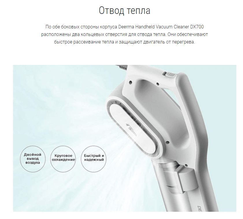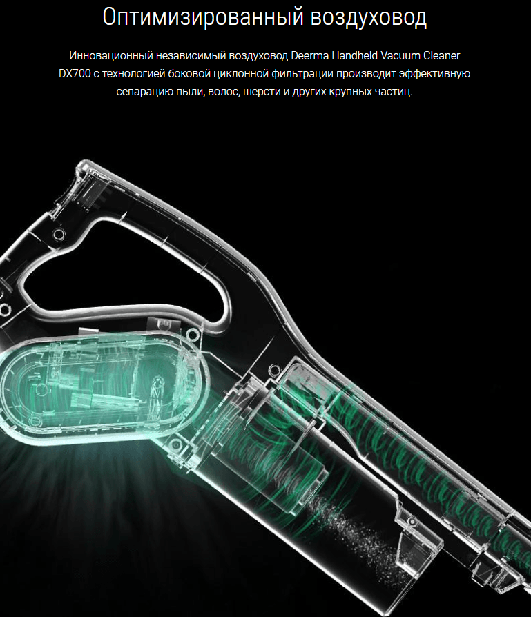 Производитель снабдил Deerma DX700 инновационной циклонной технологией всасывания, с помощью которой пыль и грязь отделяются от потока воздуха и попадают сразу в специальный резервуар. Она предупреждает образование засоров и способствует эффективной работе на протяжении долгих лет.