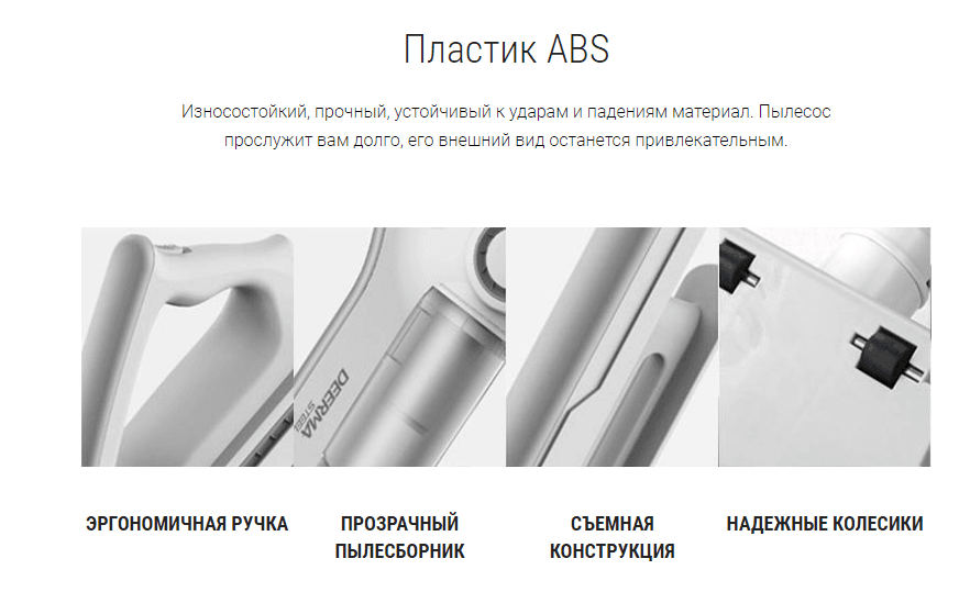 Износостойкий, прочный, устойчивый к ударам и падениям материал. Пылесос прослужит вам долго, его внешний вид останется привлекательным.
