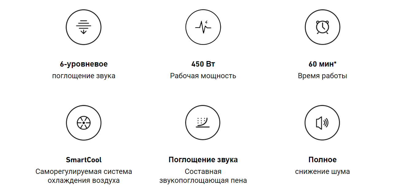 Поскольку пылесос развивает высокую мощность, для предотвращения перегрева двигателя, ему требуется охладительная система. Работает она по принципу реактивного нагнетания: сильный поток холодного воздуха обдувает все внутренние узлы, не давая им нагреваться слишком сильно и помогая пылесосу продлить его срок службы.