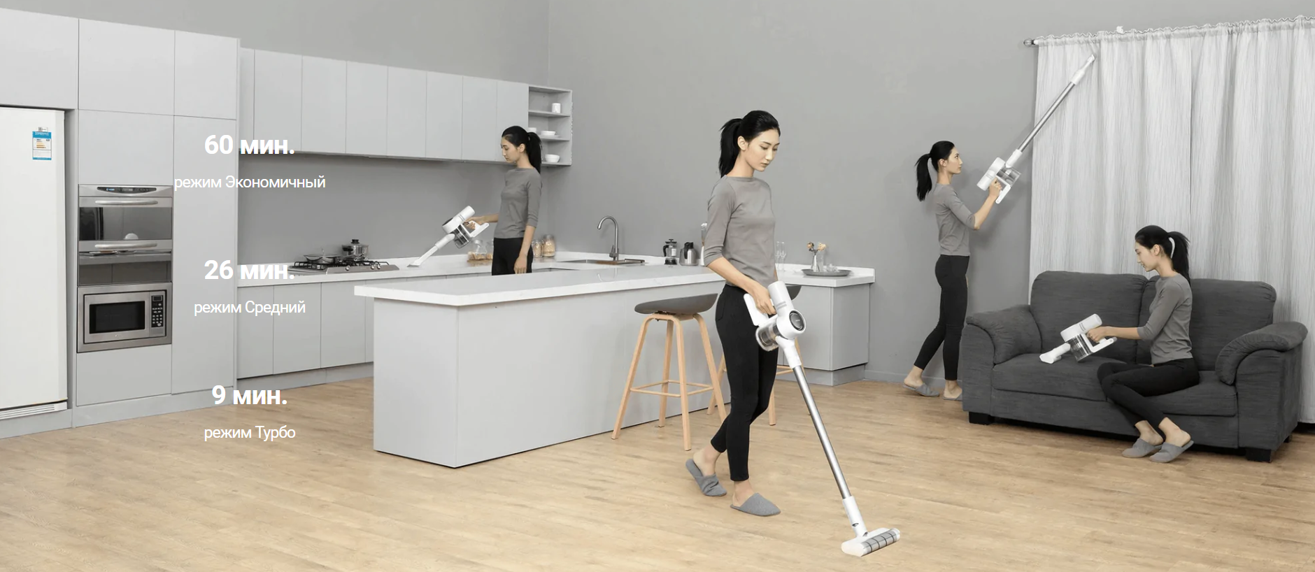 Работает пылесос от аккумулятора емкостью 2500 мАч, что делает его портативным и еще более удобным. Одного заряда будет достаточно, чтобы убрать 380 м2 за пол часа на стандартном режиме. Для особо сильных загрязнений – вы можете запустить пылесос в режиме максимальной производительности. В таком случае заряда аккумулятора хватит на 10 мин, но даже самые сильные загрязнения будут полностью устранены. В режиме экономии энергии пылесос проработает 60 мин. Время зарядки составляет 3 часа.