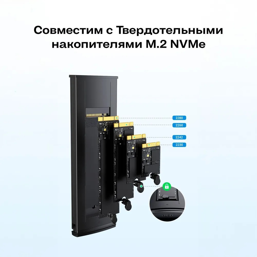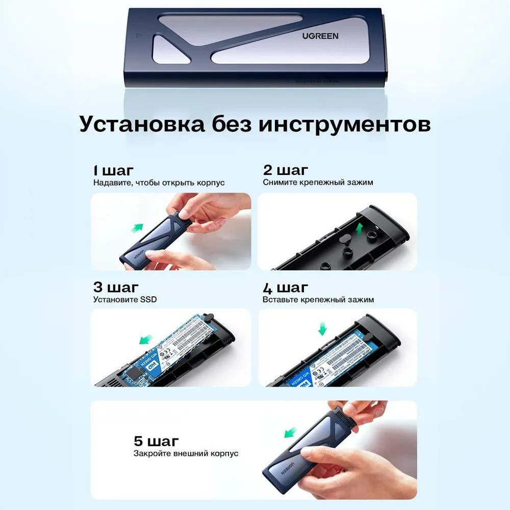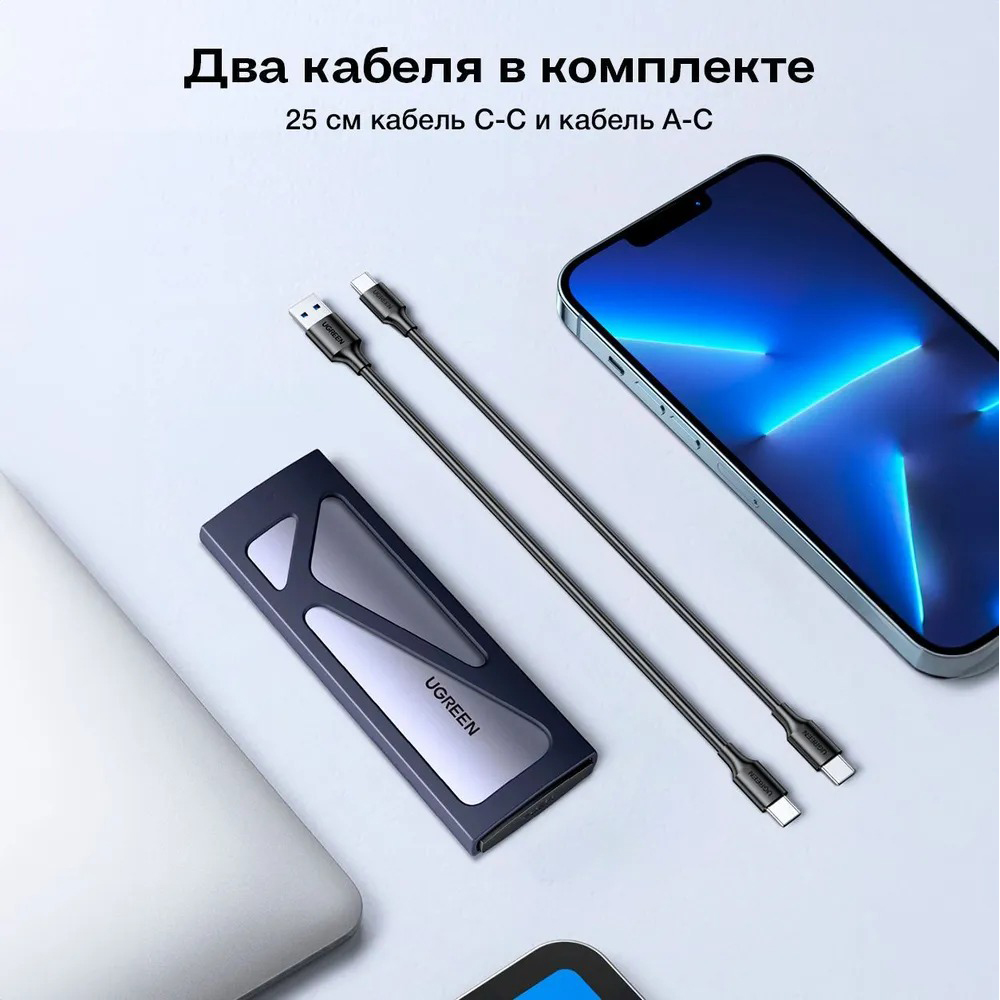 Бокс UGREEN CM578 (15512) M.2 NVMe SSD Enclosure идеально подойдет для безопасной транспортировки и использования вашего SSD. В комплекте поставки есть кабели USB-C к USB-C и USB-C к USB-A, что обеспечивает подключение устройства к любому компьютеру или ноутбуку. Выполненный в цвете “серый космос”, бокс внешний для жесткого диска придаст вашему устройству защиту и стильный вид.