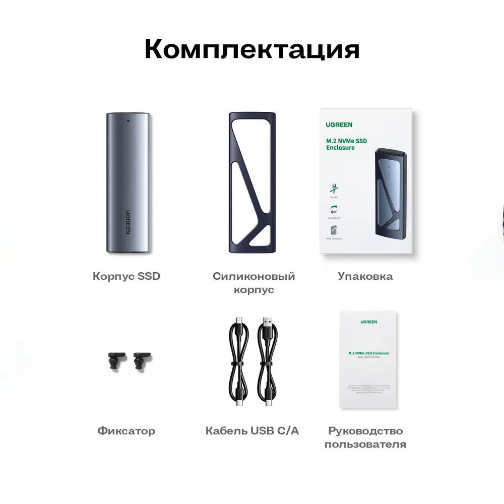 Бокс внешний для жесткого диска UGREEN CM578 (15512) M.2 NVMe SSD Enclosure с кабелем USB-C к USB-C и USB-C к USB-A. Цвет: серый космос