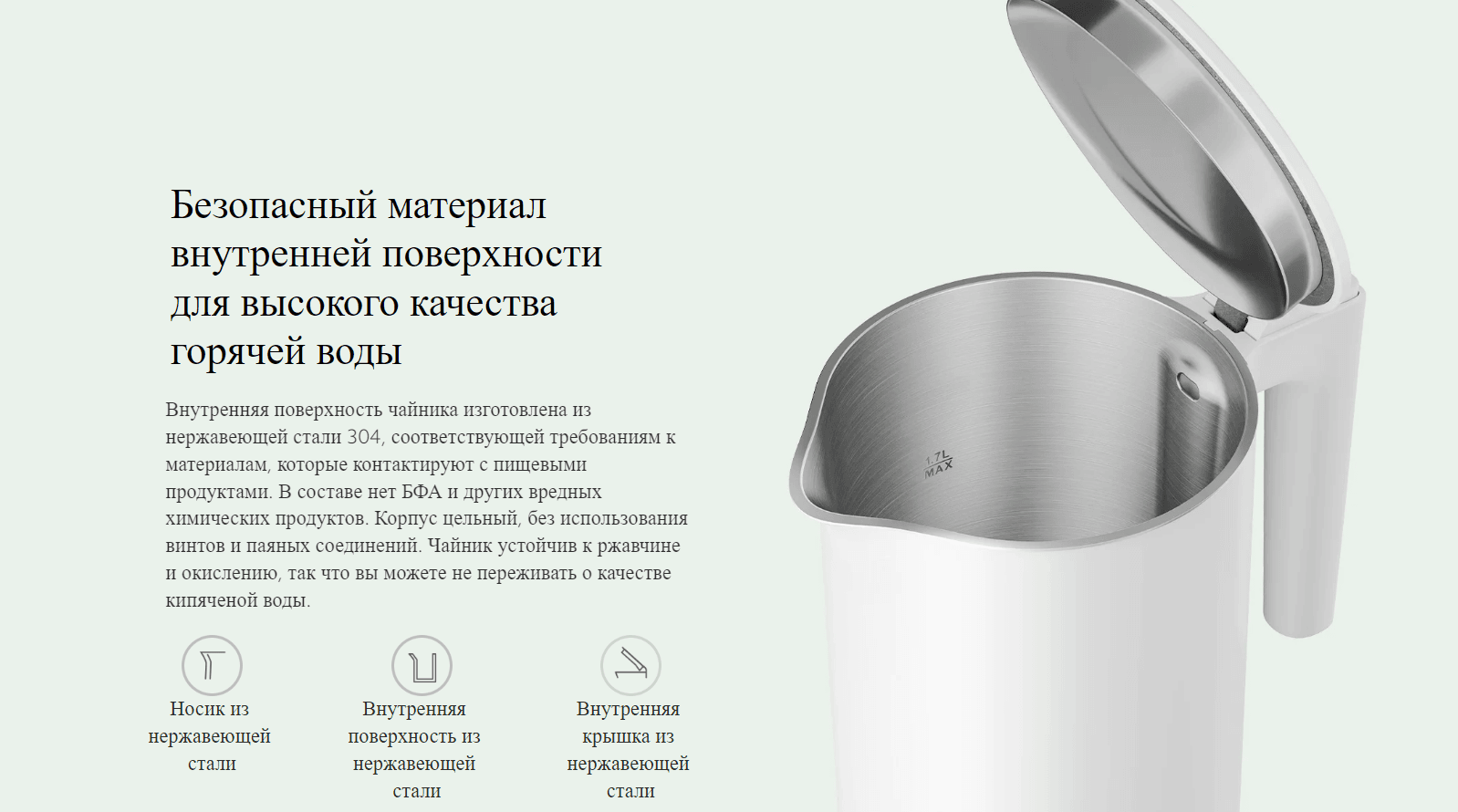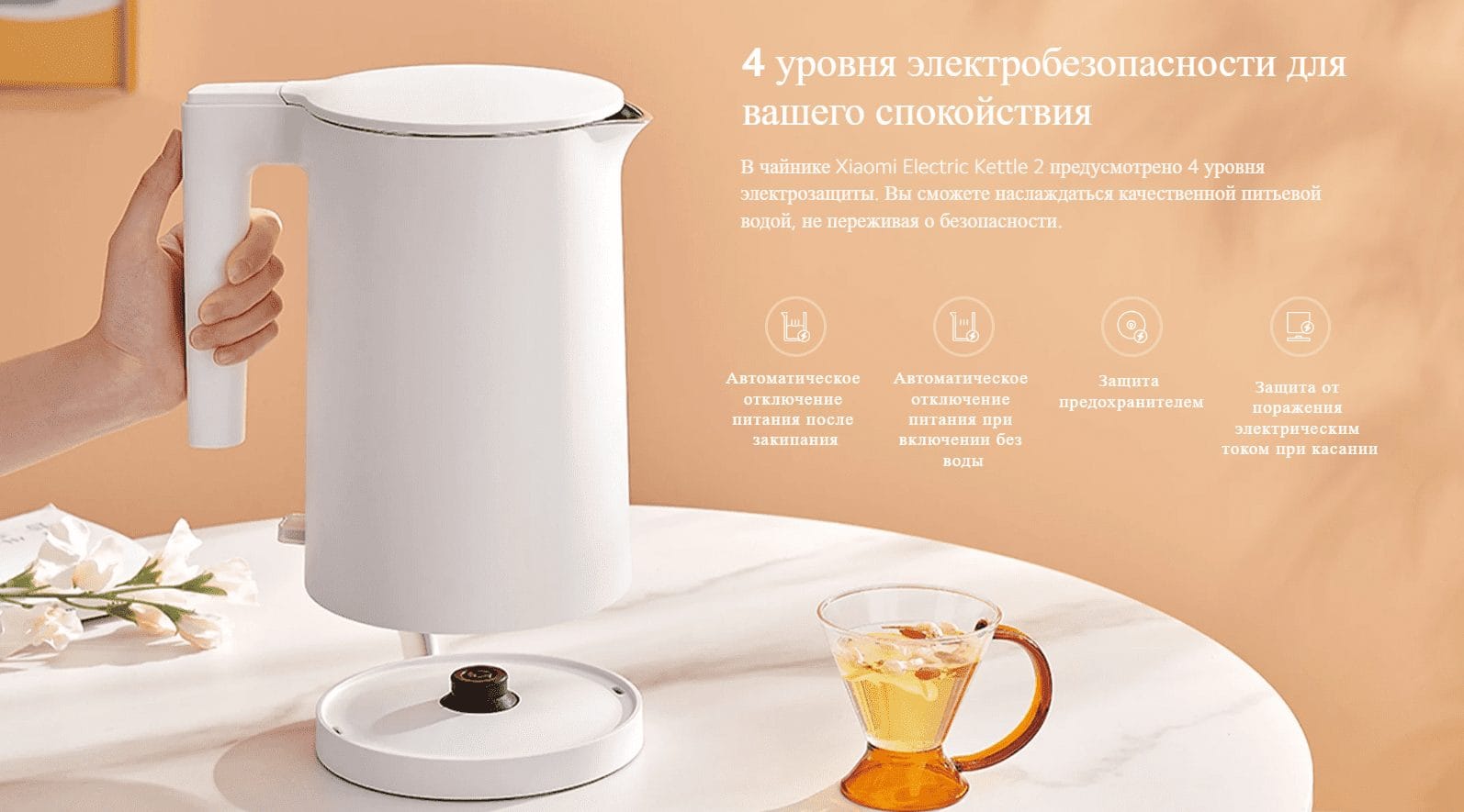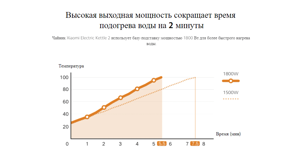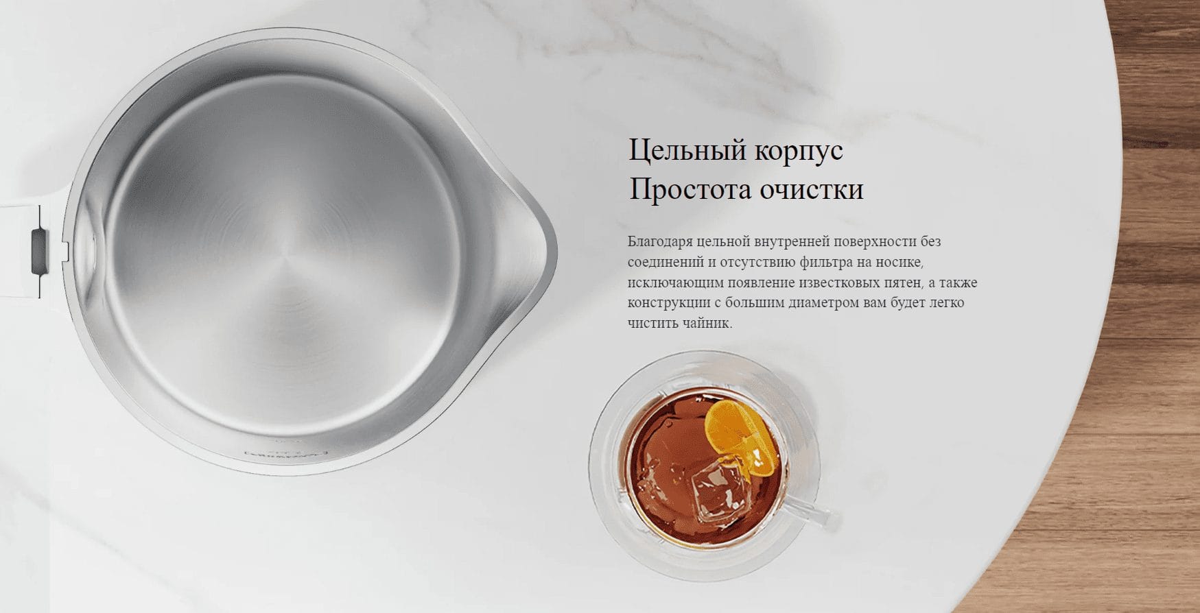 Чайник Xiaomi Electric Kettle 2 использует базу-подставку мощностью 1800 Вт для более быстрого нагрева воды.