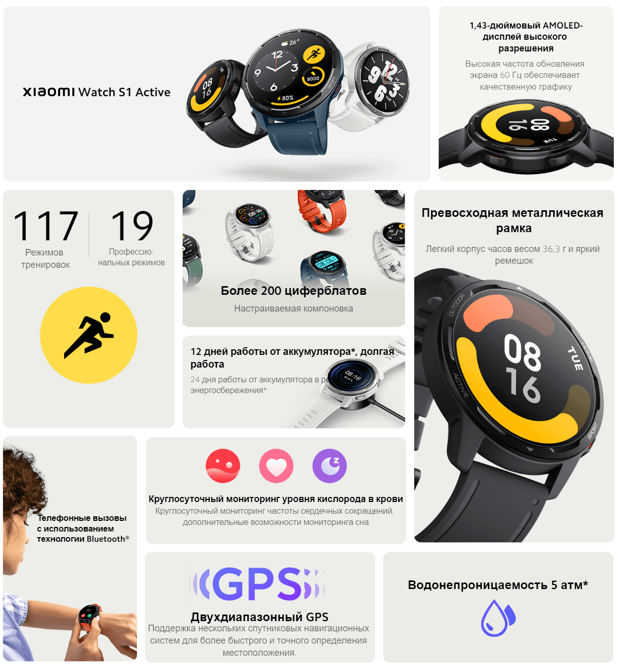 | Комплектация | Смарт-часы Xiaomi Watch S1 Active GL, магнитный кабель для зарядки, руководство пользователя |