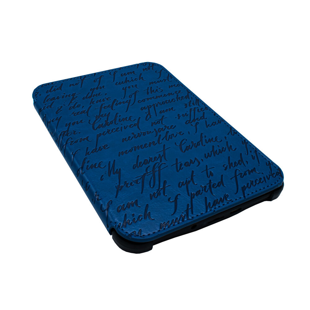 Чехол для ONYX BOOX MAGELLAN (цвет: тёмно-синяя кожа, тиснение: текст), совместим с Darwin/Faust/Vasco da Gama