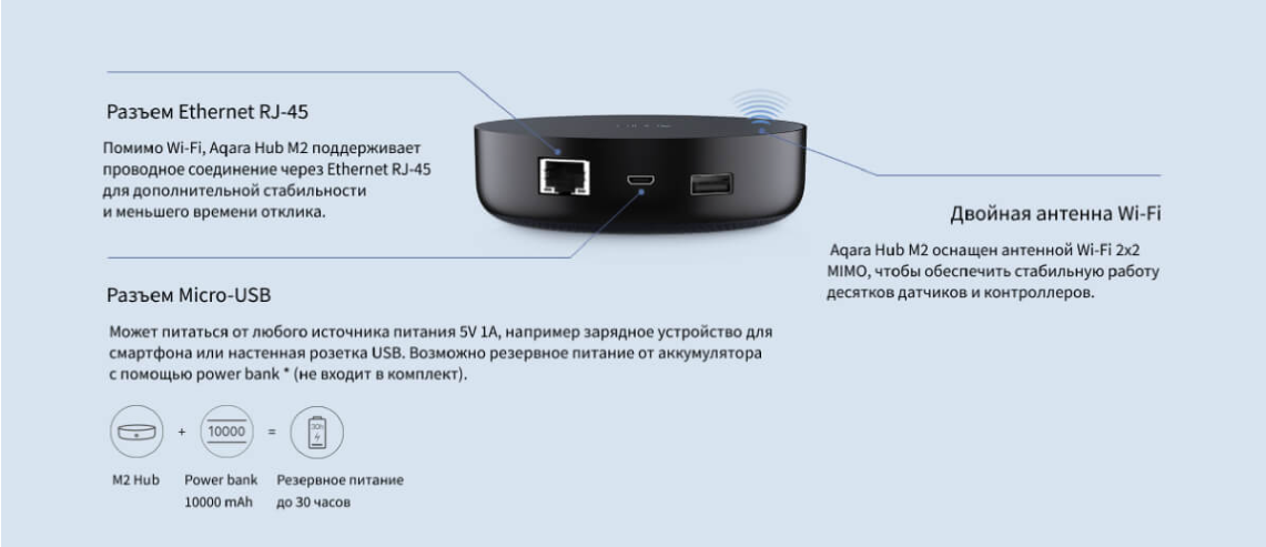 Центр управления умным домом Hub M2 использует беспроводные протоколы Wi-Fi, Bluetooth, Zigbee 3.0 и ИК-управления для подключения большего количества устройств.