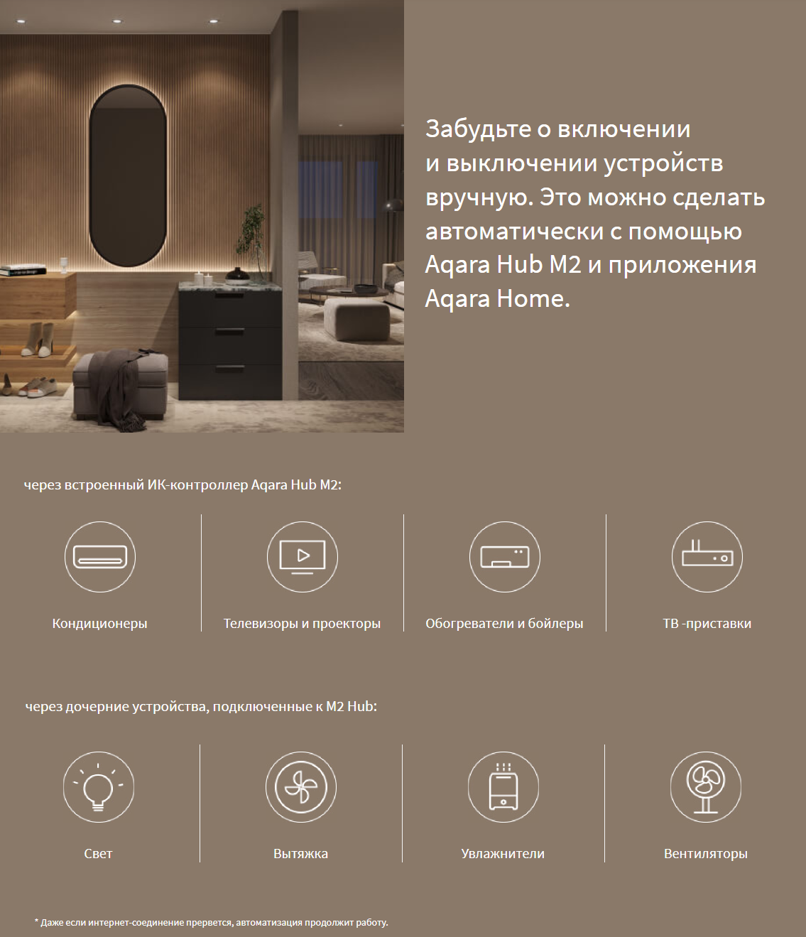 Управление техникой через ИК, легко подключается, отлично работает в экосистеме Aqara Home, есть порт подключения к сети, Zigbee 3.0