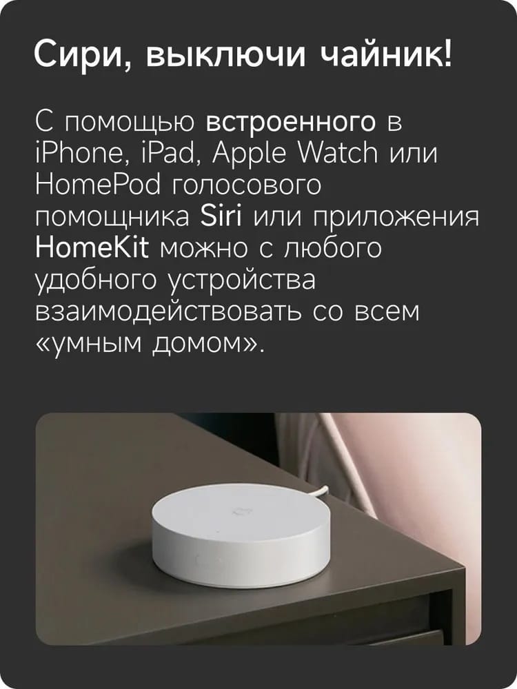 Центр управления домом работает с гаджетами Apple, включая iPhone и HomePod, поэтому вы всегда можете воспользоваться услугами голосового ассистента Siri для управления устройствами системы «Умный дом».