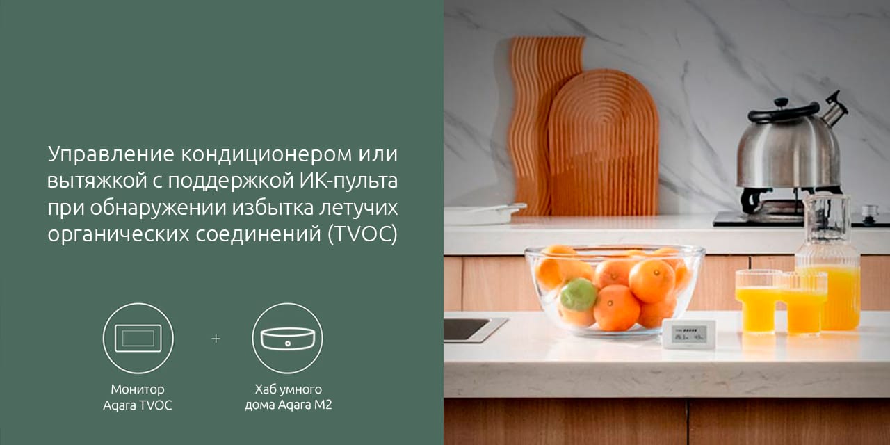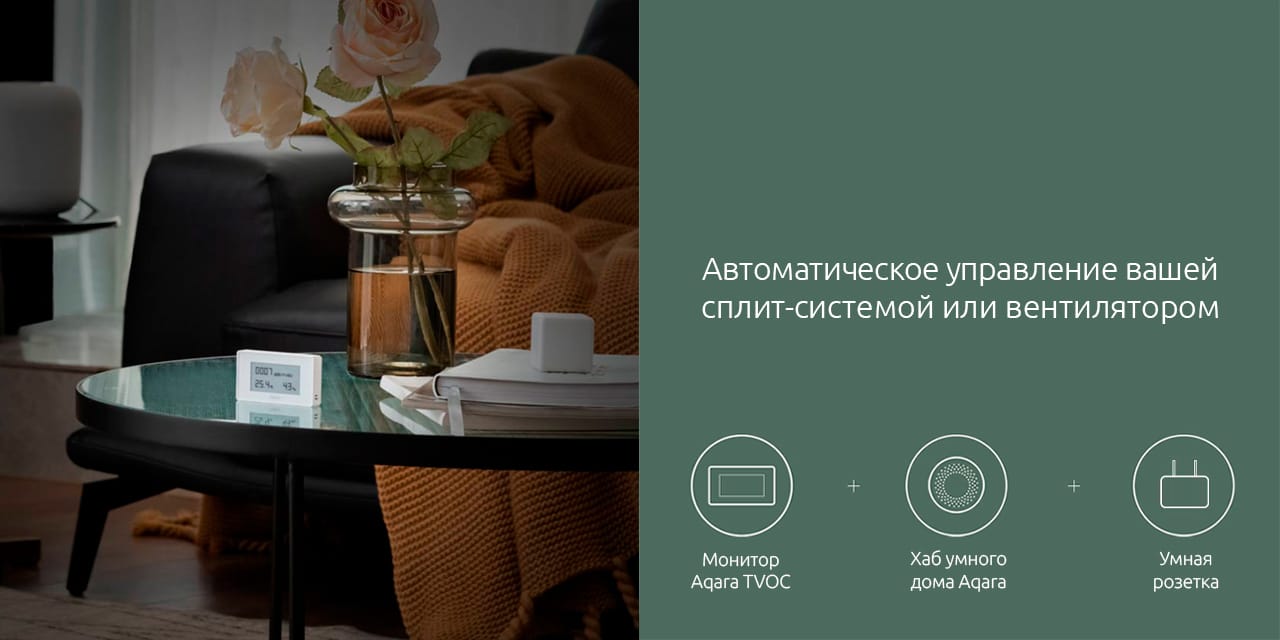С помощью анализатора воздуха можно не только правильно подобрать и настроить соответствующее климатическое оборудование, но и эффективно управлять такими устройствами, включая полную автоматизацию на основе сценариев. Aqara TVOC может вовремя включить вытяжку, соответствующий режим кондиционера или другое устройство, используя хабы с поддержкой ИК-управления и умные розетки, даже без вашего участия.