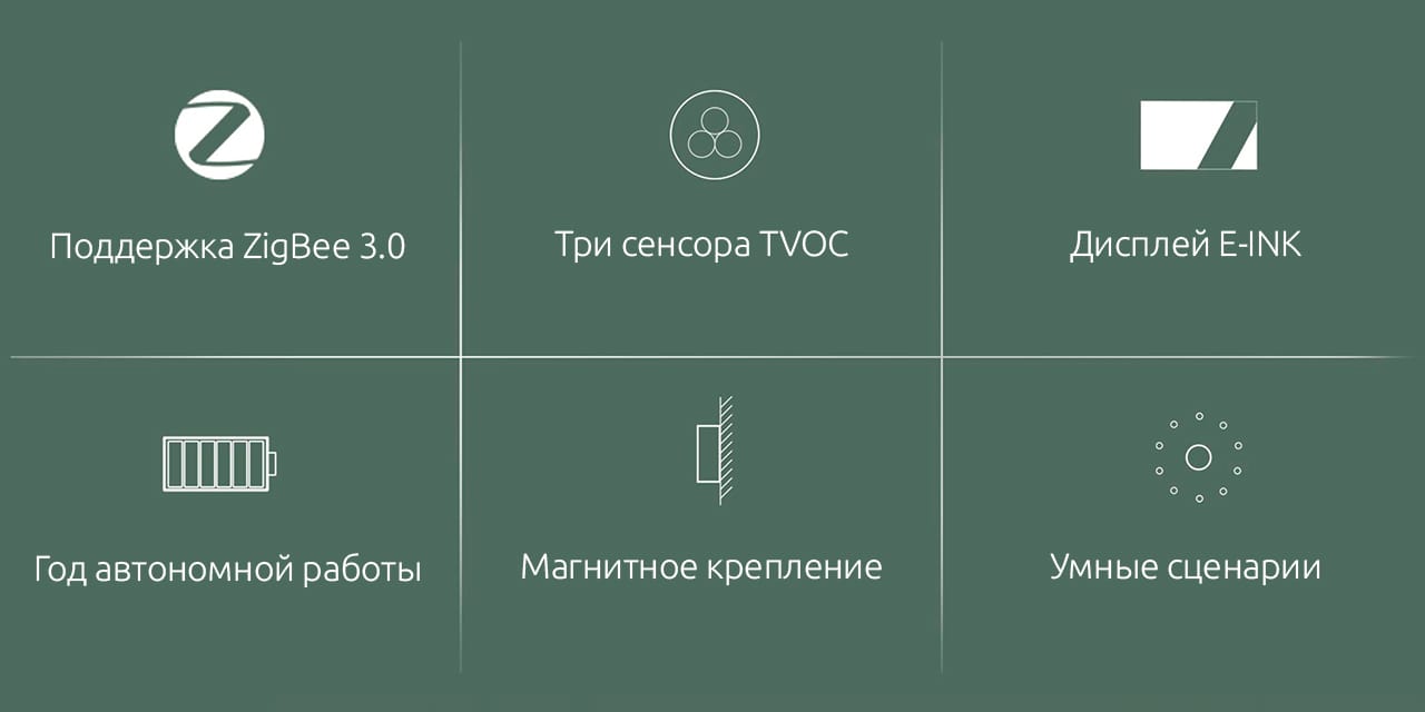 Самый лучший анализатор воздуха, есть монитор, на котором все интуитивно понятно и четко видно все критерии оценки воздуха, подключается к Алисе, подружили с кондиционером, сделали сценарии на обогрев и охлаждение если это требуется, допустим, по ночам, когда следить за климатом ну как бы некогда но очень необходимо. Покупкой довольны, всем рекомендуем. Нужен хаб, в комплекте двухсторонний скотч и магнит на скотче, приложение акара информирует о состоянии батарейки