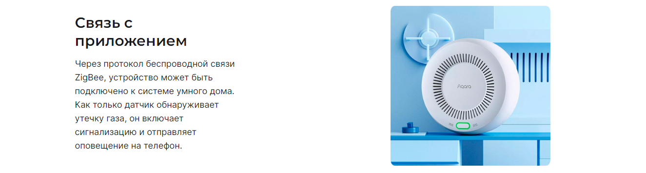 Благодаря протоколу Zigbee 3.0 датчик можно подключать к другим устройствам Aqara для создания домашней автоматизации. Например, можно настроить автоматизацию для включения онлайн-видео G3 Camera Hub при срабатывании датчика газа, чтобы вы могли проверить комнату на наличие признаков пожара.