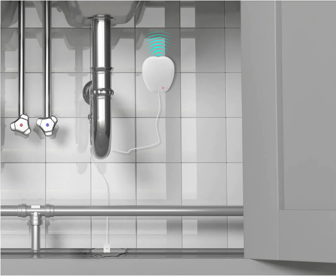 Устройство для обнаружения утечек воды с подключением по Wi-Fi. Он предназначен для мониторинга и контроля уровня влажности в помещениях, таких как кухня, ванная комната, подвал или другие места, где могут возникнуть протечки.