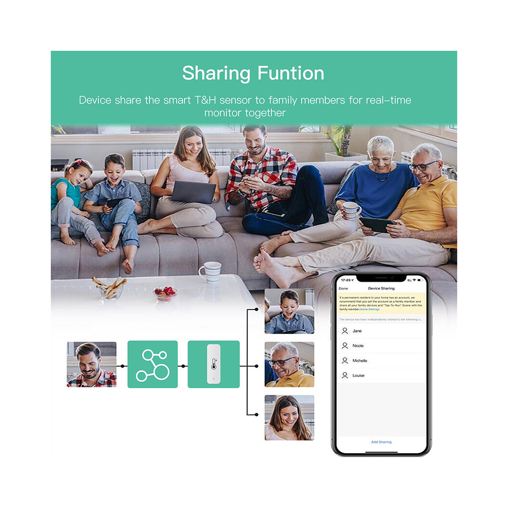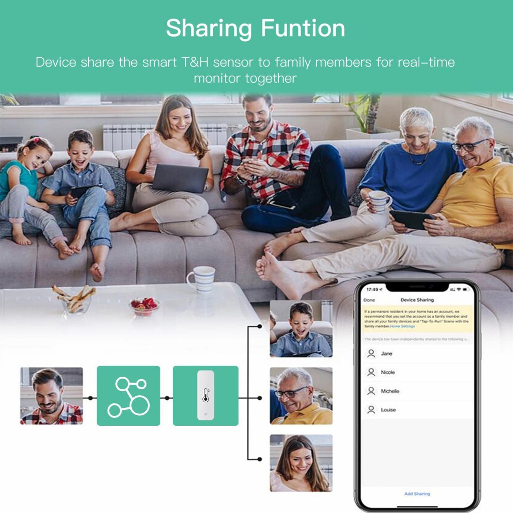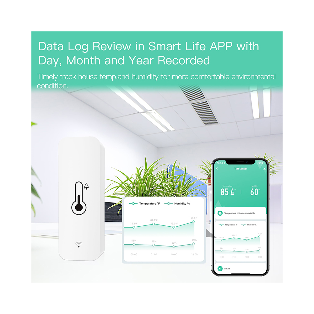 Датчик работает на основе Wi-Fi, что позволяет ему подключаться к домашней сети и отправлять данные о температуре и влажности на ваш смартфон или планшет. Это делает его идеальным для управления микроклиматом в вашем доме и экономии энергии.