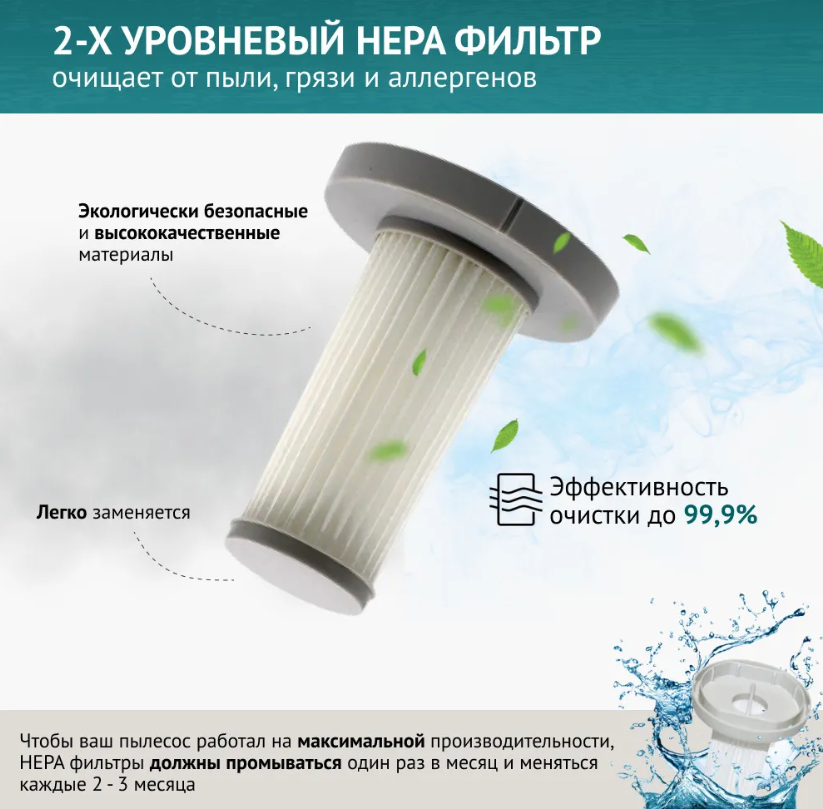 НЕРА-фильтр создан из высокопрочных, экологически чистых материалов, и при своевременной замене помогает пылесосам Deerma работать дольше. Он способен захватывать до 99.97% пыли и аллергенов, таких как плесень, бытовая пыль, перхоть животных, споры и пыльца растений. Модель совместима с пылесосом DX700 и достаточна проста в установке. Сохраните работоспособность своего пылесоса надолго с помощью качественного НЕРА-фильтра.