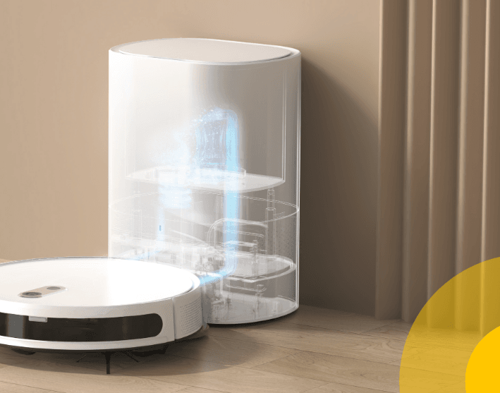 Станция самоочистки емкостью 3 литра позволит вам забыть об опустошении пылесборника в ближайшие 60 дней. Пылесборник пылесоса автоматически соединяется с пылесборником станции. Пыль и мусор всасываются внутрь станции через воздуховод без участия человека.