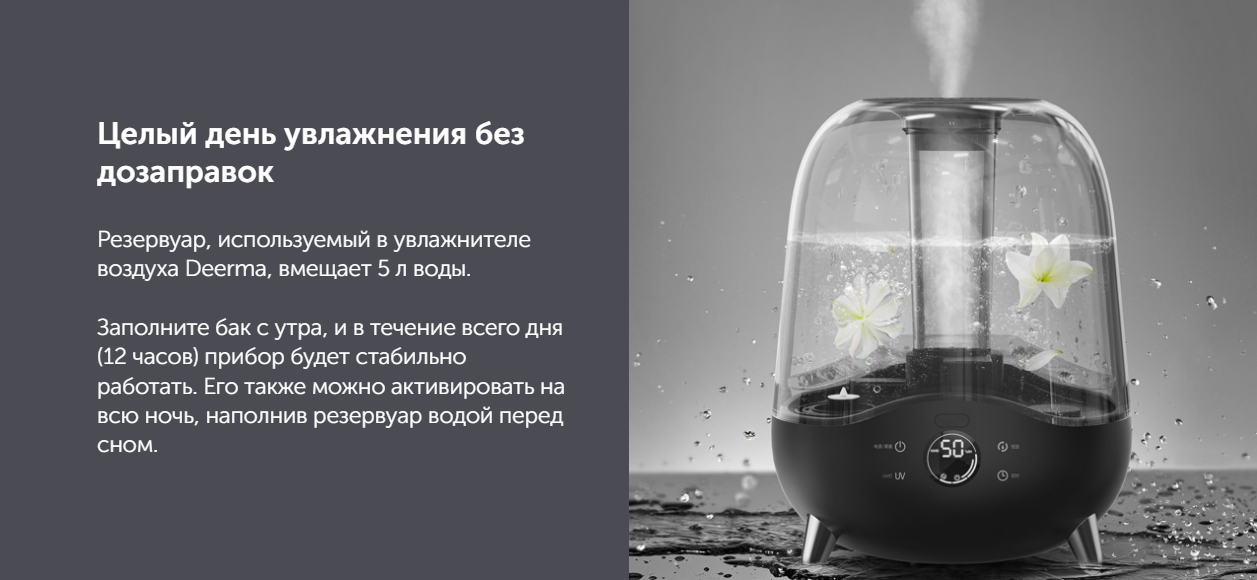 Супер увлажнитель, оранизирует хорошо. Но у него есть функция ультрофиолет , но он сьедет цветы под ноль, у нее нет функции отключения. Если включать , то только на час два раза в день, тогда норм. А так супер.