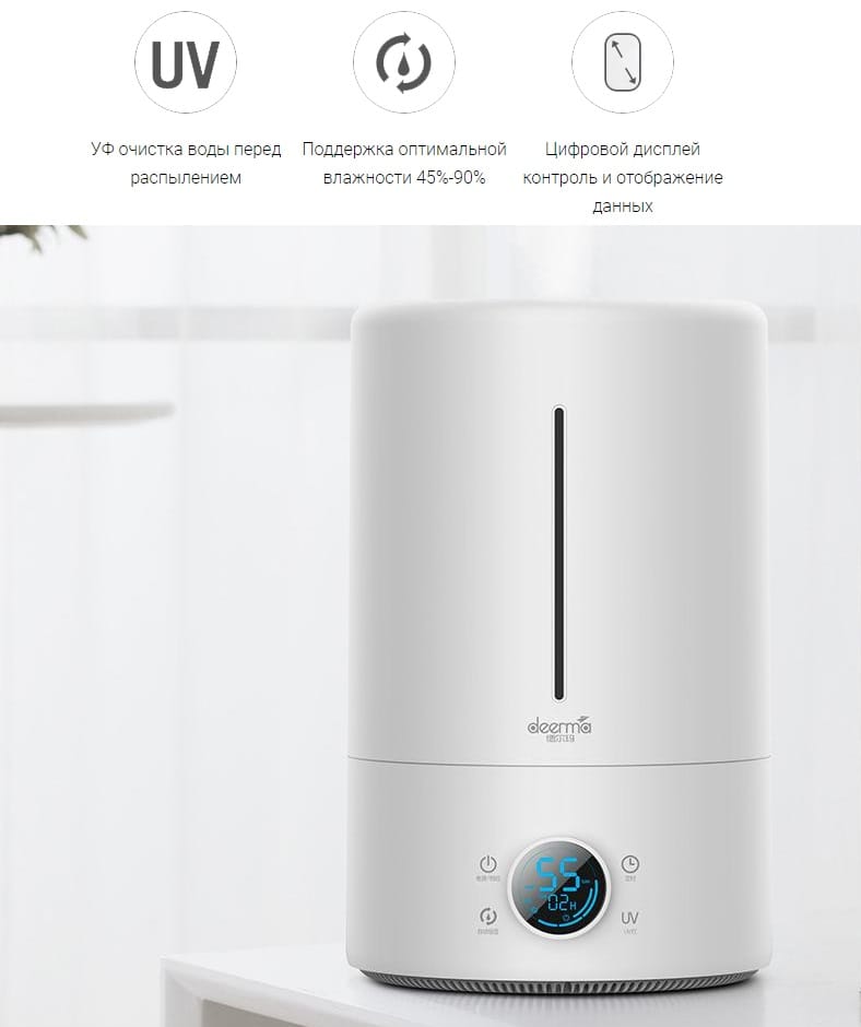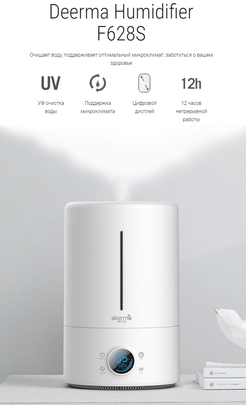 Компания Deerma создает свои товары с учетом потребностей в комфорте и пользе для здоровья покупателей. Полностью оптимизированный Deerma Humidifier F628S получил более прочный внешний корпус, технологию УФ очистки воды и большой резервуар на 5 л. Этот увлажнитель добавит комфорта в вашу жизнь.
