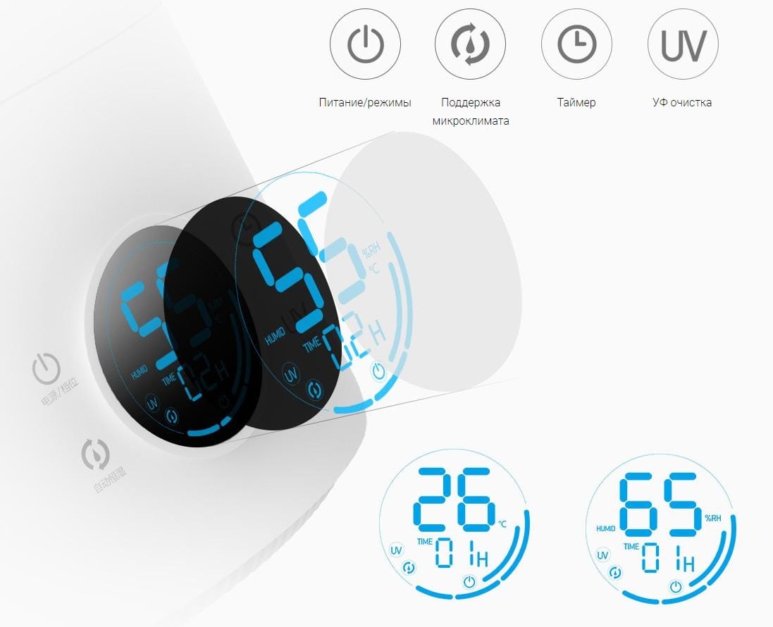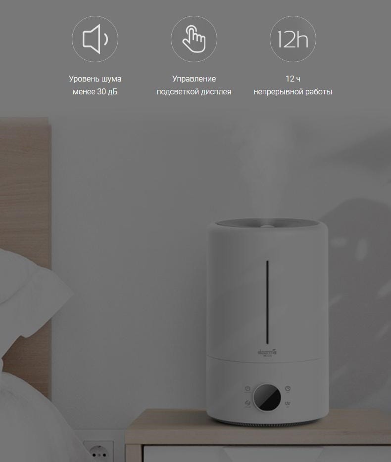 Ваш отдых не будет потревожен работой увлажнителя. Уровень шума Deerma Humidifier F628S менее 30 дБ. Включайте устройство перед сном и наслаждайтесь оптимальным микроклиматом ночью. Утром вы проснетесь бодрым и отдохнувшим. Для того чтобы подсветка дисплея стала менее яркой, нажмите на кнопку таймера и удерживайте ее в течение 3 секунд.