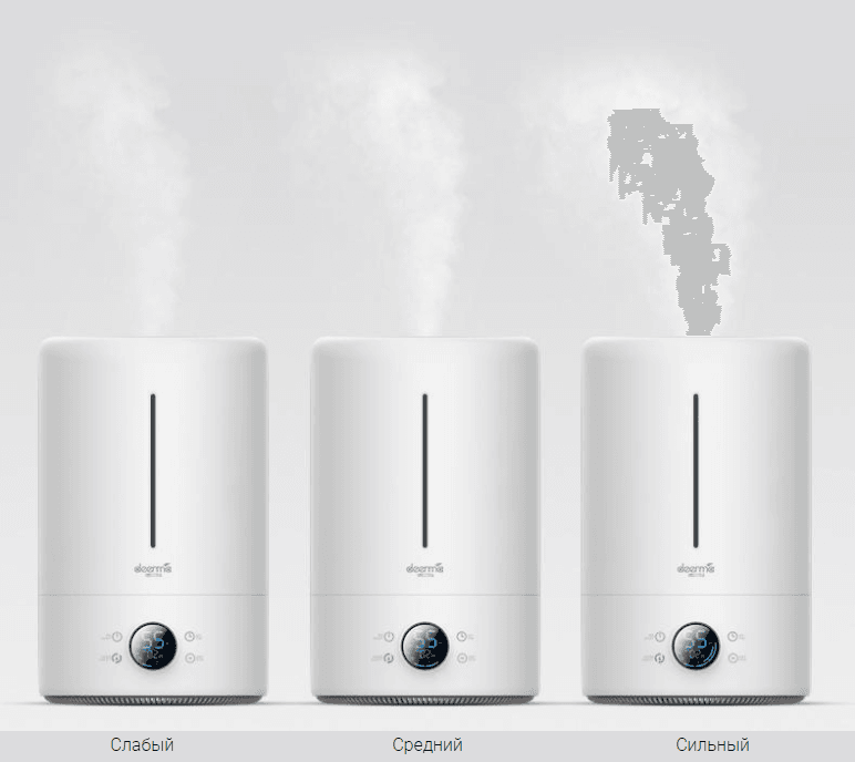 Deerma Humidifier F628S имеет три режима работы. Уровень распыляемой влаги зависит от выбранного режима. Кнопка включения на внешней стороне корпуса является также переключателем режимов. Выберете подходящий объем распыляемого водяного тумана.
