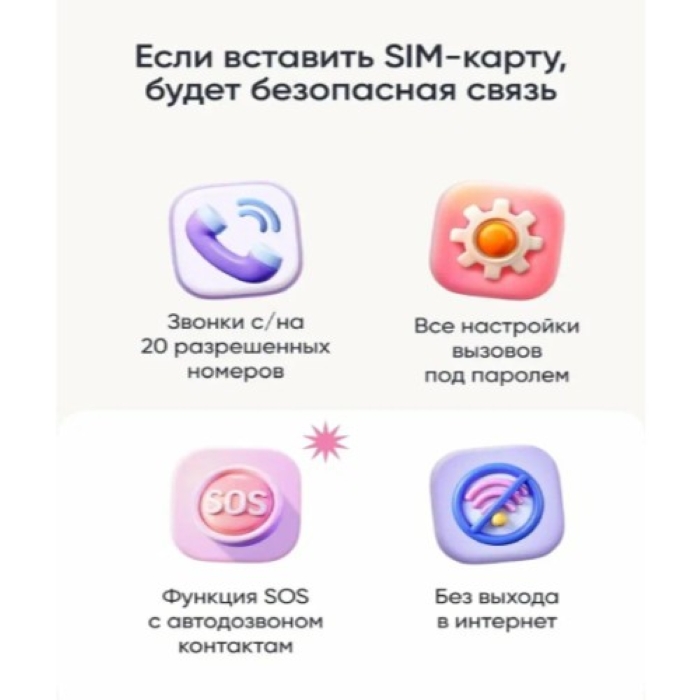 | Особенности | Сказки, Игры, Фонарик, Видеоплеер, Звуки, Калькулятор, Будильник, Галерея, Календарь, Контакты (до 20) |