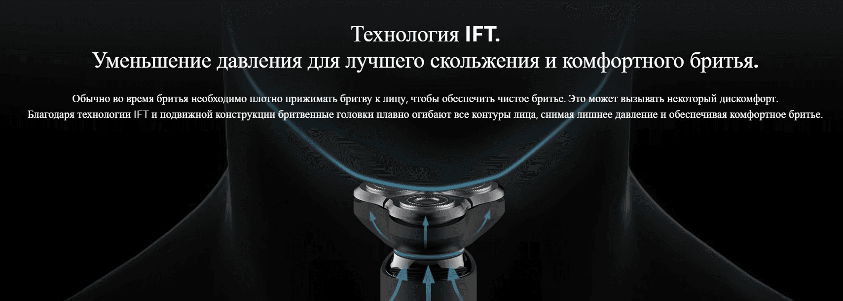 Благодаря гибкой и подвижной конструкции Mi Electric Shaver S500, состоящей из трёх бритвенных головок с углом вращения 360°, бритва плотно прилегает к лицу и повторяет все мельчайшие детали контура вашего лица, обеспечивая гладкое и безукоризненное бритье.