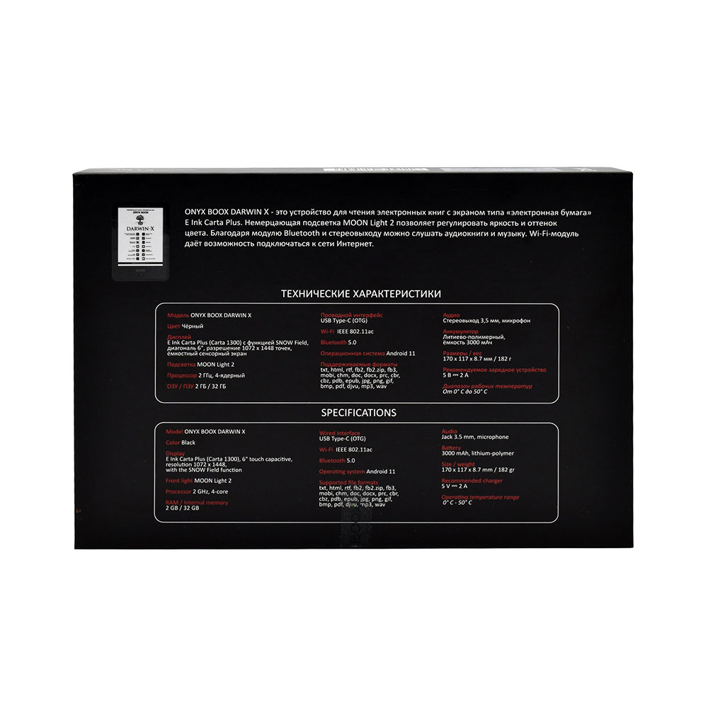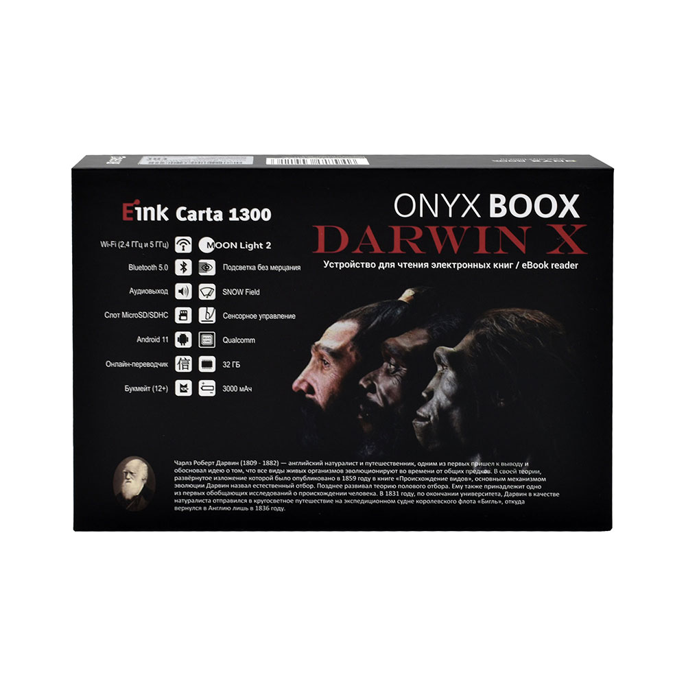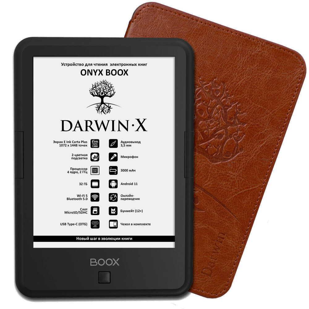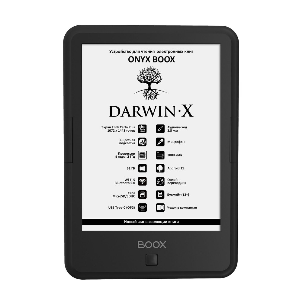 Электронная книга ONYX BOOX DARWIN X (чёрная, Carta 1300, 32 ГБ, Android 11, MOON Light 2, Wi-Fi, BT, USB-C