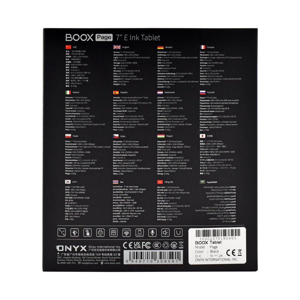 Электронная книга ONYX BOOX PAGE (чёрная, E Ink 7”, MOON Light 2, Wi-Fi 5, BT, Android 11)