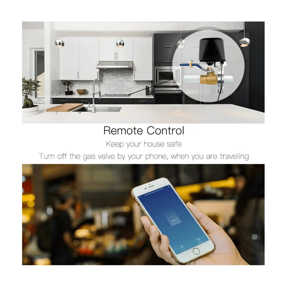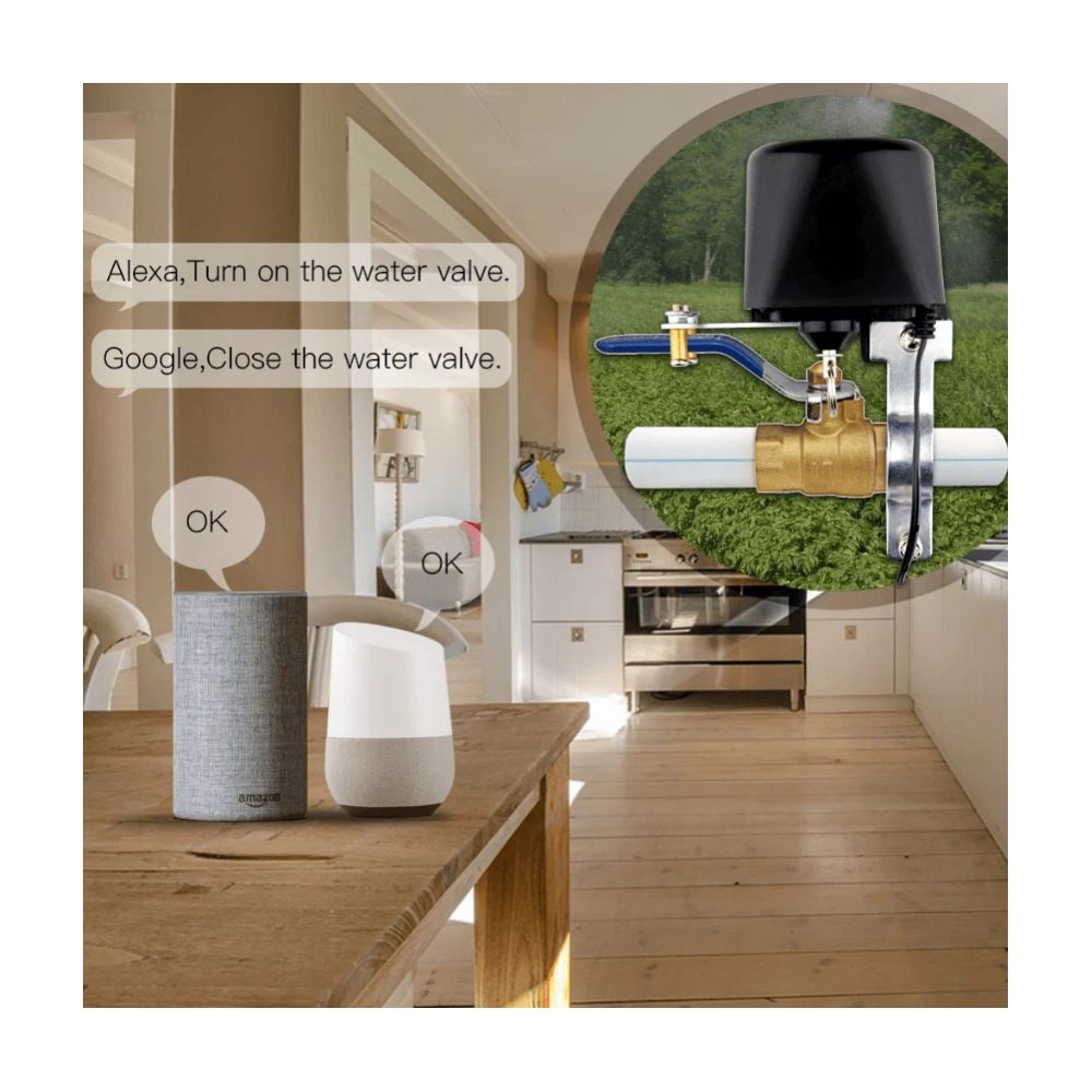 Это умный водяной клапан, который позволяет контролировать расход воды и газа в вашем доме через приложение на вашем смартфоне или через голосовых помощников. Он работает по Wi-Fi и подключается к домашней сети, что позволяет вам управлять им из любой точки мира.