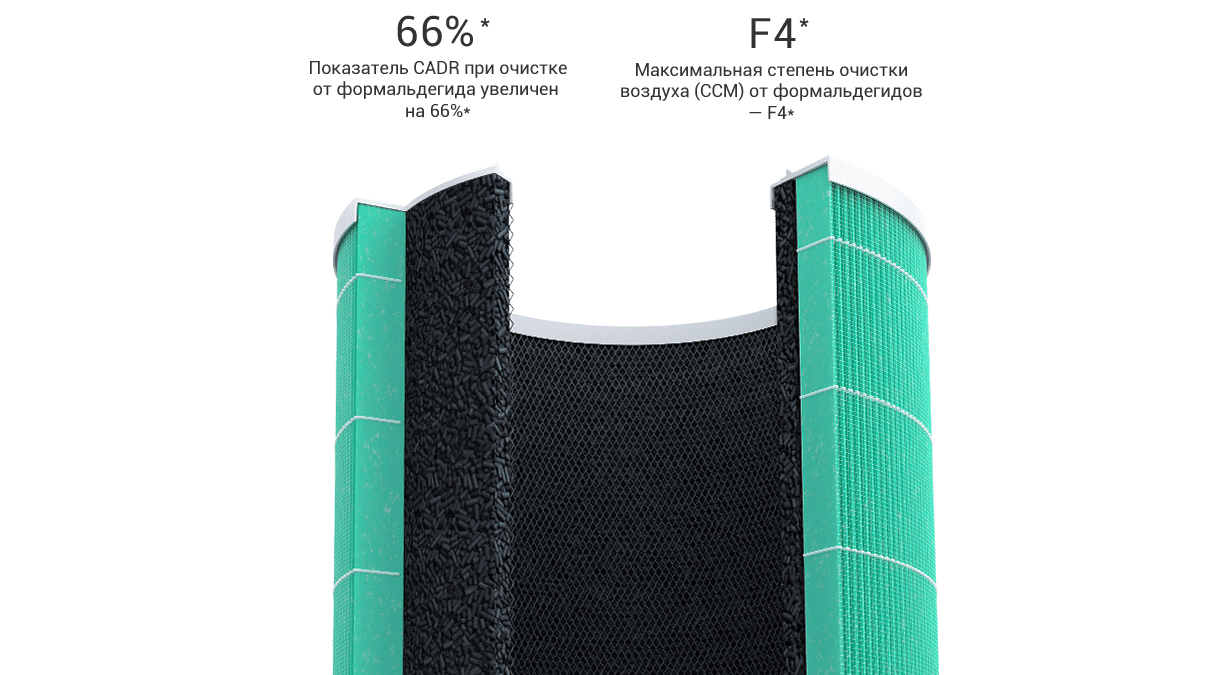 Интегрированная система фильтрации эффективно снижает сопротивление воздушному потоку, а хорошая проходимость воздуха позволяет системе нагнетания воздуха достичь более высокой производительности и лучшего эффекта очистки. Благодаря оптимизированной конструкции также увеличено количество полезного пространства, Mi Air Purifier Filter Formaldehyde S1 смог вместить в себя больше активированного угля.