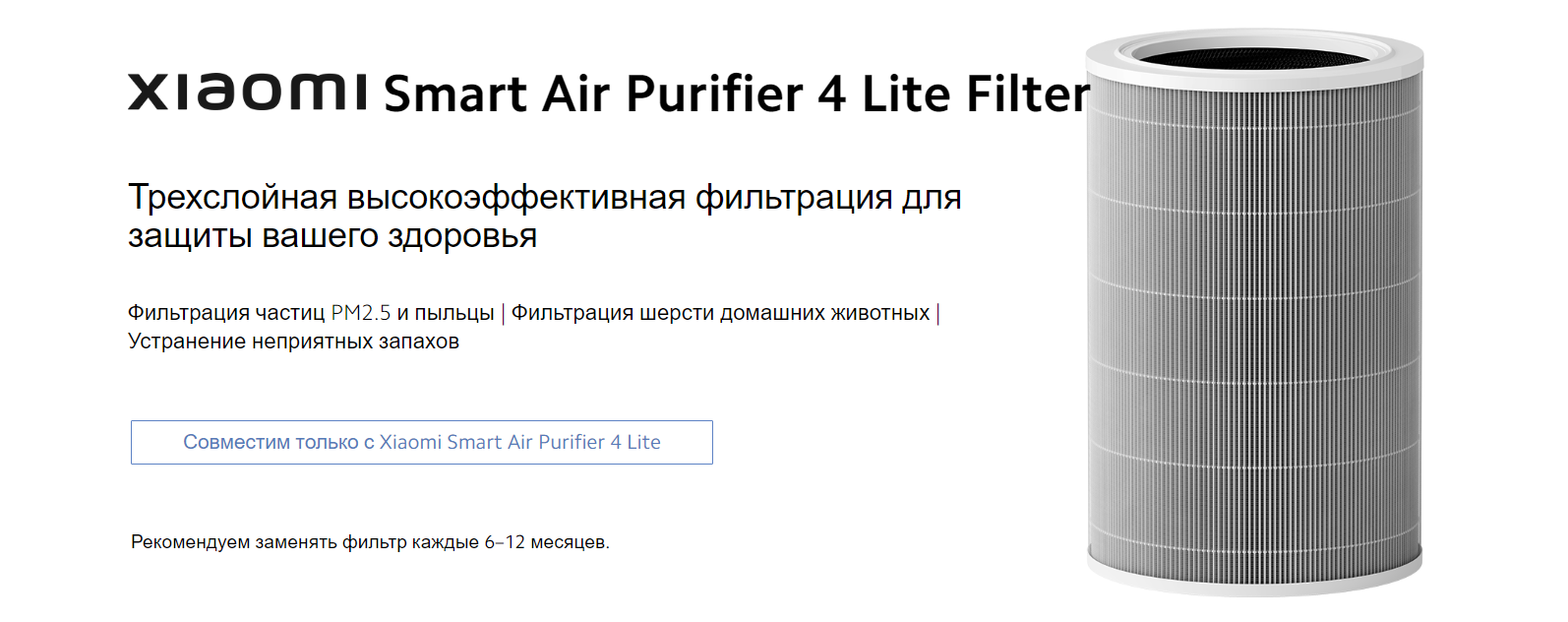 | Совместимость | Xiaomi Air Purifier 4 Lite |