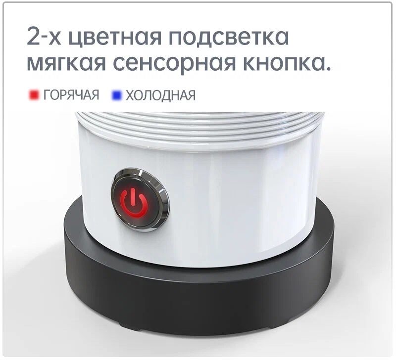 | Управление | Кнопка на корпусе. Однократное нажатие – горячая густая пенка, Двойное нажатие – горячая тонкая пенка, Зажатие кнопки на 3 секунды – холодная густая пенка. |