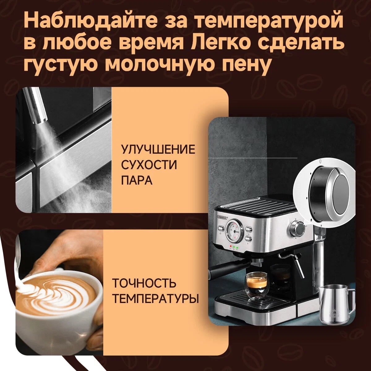 | Особенности | Одновременная наполнение двух кружек, умный контроль температуры, встроенный капучинатор |