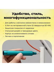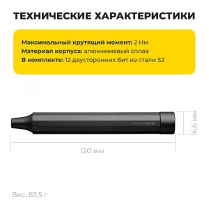 | Комплектация | Отвертка, набор двусторонних бит 12шт |