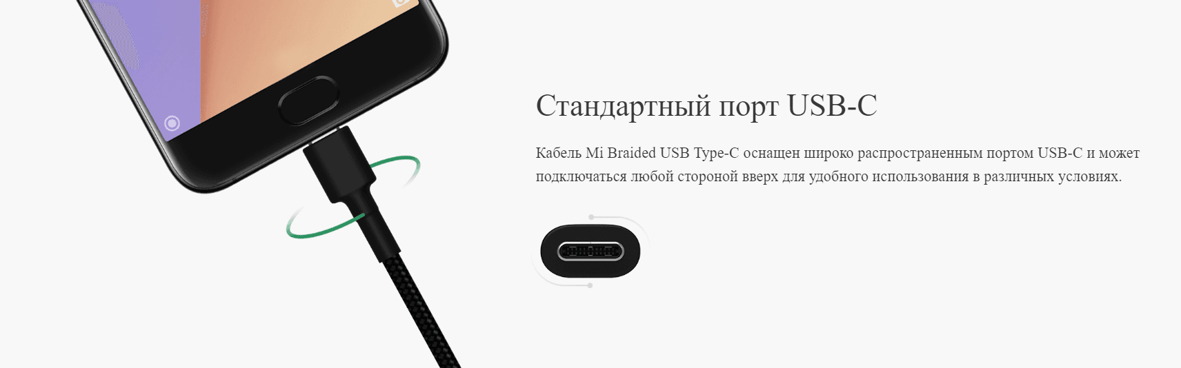Кабель Mi Braided USB Type-C также тщательно отрегулирован в местах, не видных пользователю, а под оплеткой добавлено несколько слоев защитного материала, который делает кабель более прочным и долговечным.
