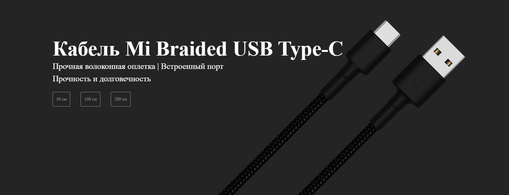 | Комплектация | Кабель Mi Braided USB Type-C Cable 100см Black |