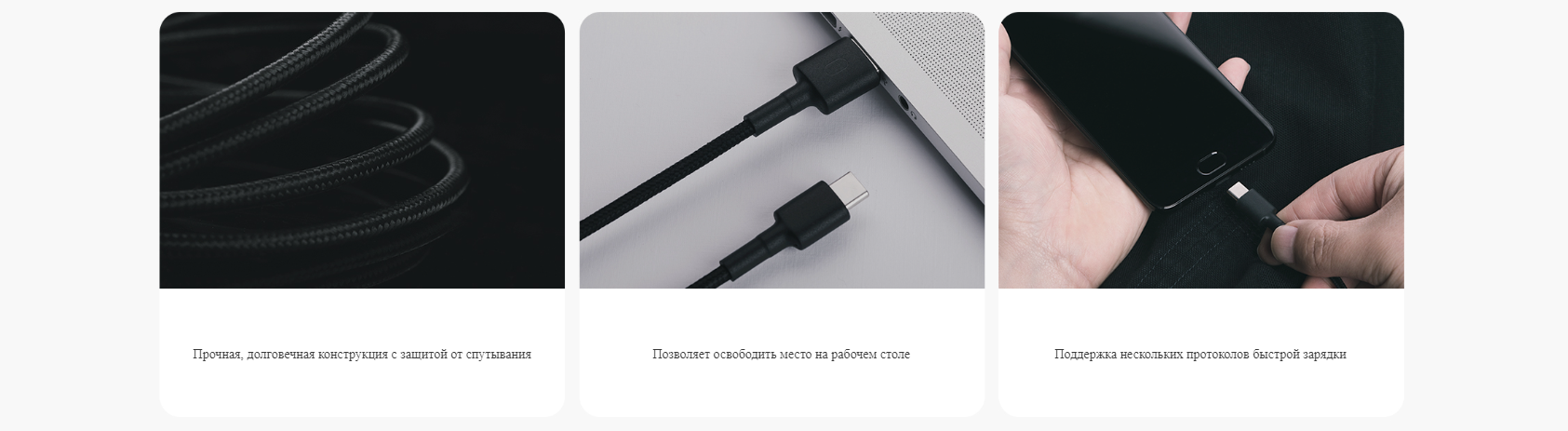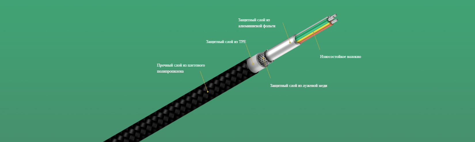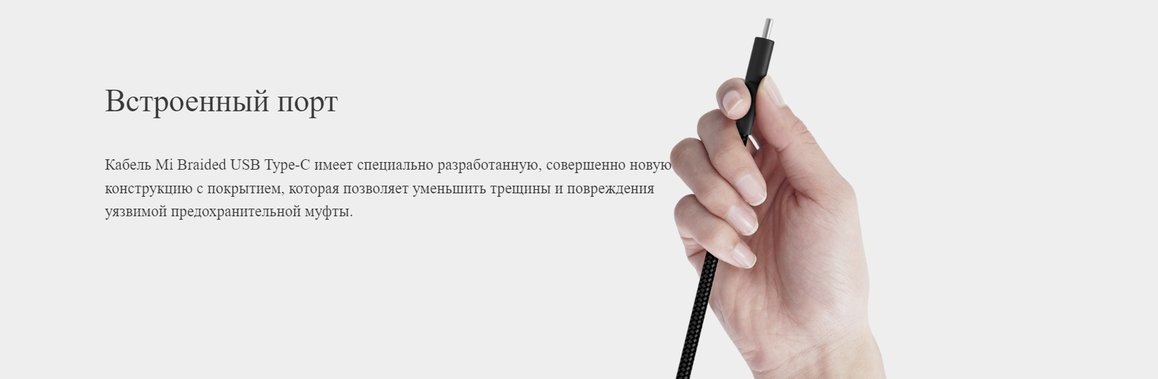 Кабель Mi Braided USB Type-C также тщательно отрегулирован в местах, не видных пользователю, а под оплеткой добавлено несколько слоев защитного материала, который делает кабель более прочным и долговечным.