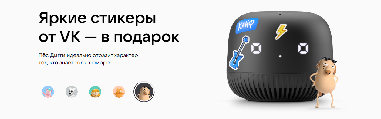 | Комплектация | Умная колонка, блок питания с кабелем, набор наклеек, ознакомительный буклет |
